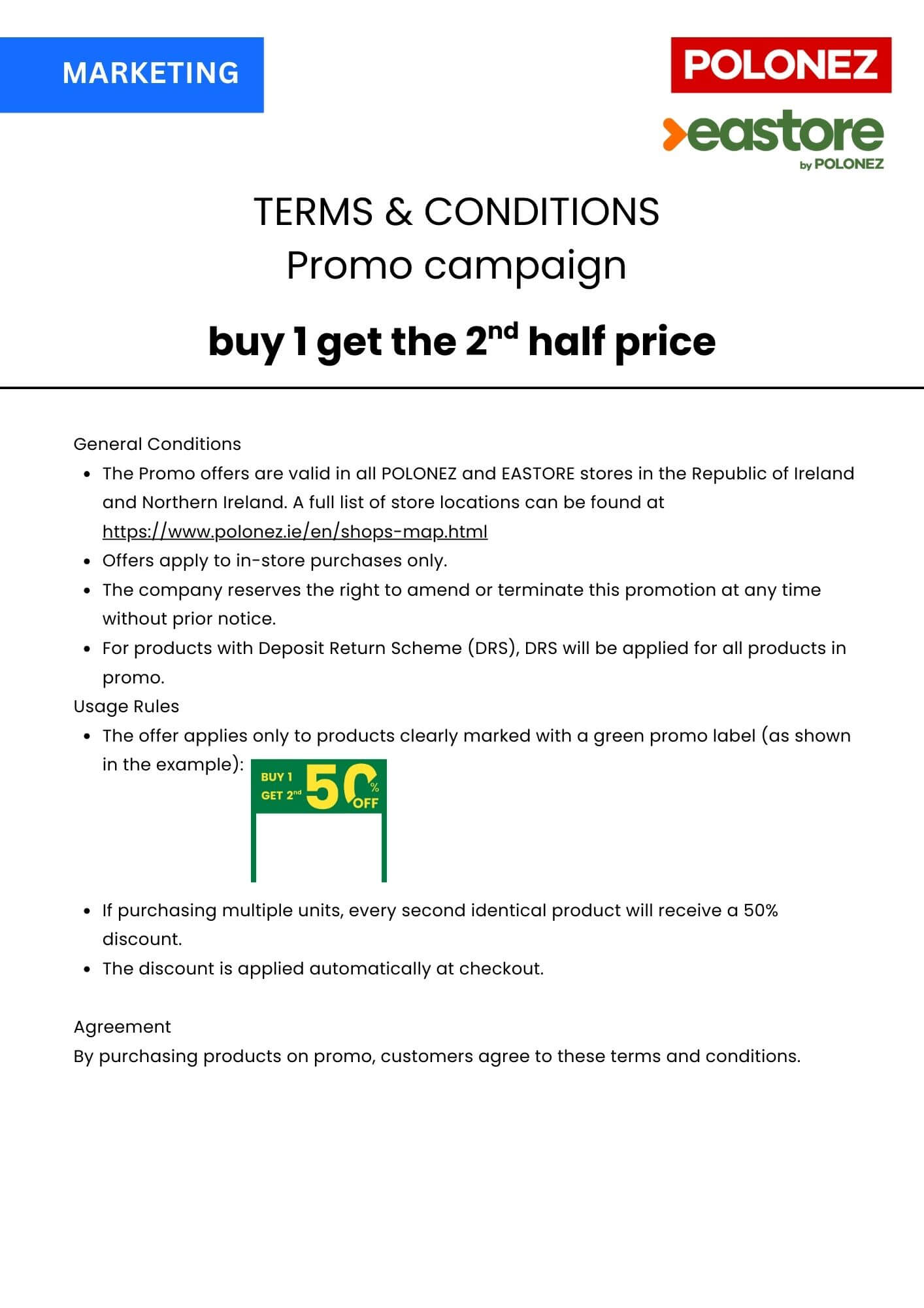 Campaign: BUY 1 GET THE 2ND HALF PRICE CAMPAIGN TERMS & CONDITIONS